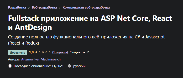 [Udemy] Artemov Ivan Vladimirovich - Fullstack приложение на ASP Net Core, React и AntDesign (2021)