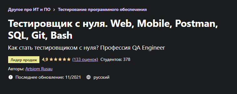 [Udemy] Artsiom Rusau - Тестировщик с нуля. Web, Mobile, Postman, SQL, Git, Bash (2021)
