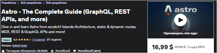 [Udemy] Astro — полное руководство (GraphQL, REST API и др.) (2023)