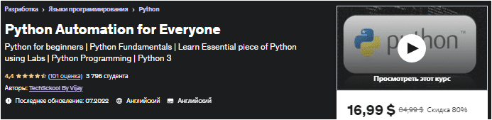 Если вы ищете курс, который просто не поможет вам начать работу с Python, но также позволит вам подумать об автоматизации различных повторяющихся задач, которые вы видите вокруг себя, этот курс для вас.