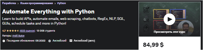 [Udemy] Автоматизация всего с помощью Python (2022)