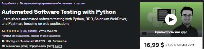[Udemy] Автоматизированное тестирование ПО с Python (2022)
