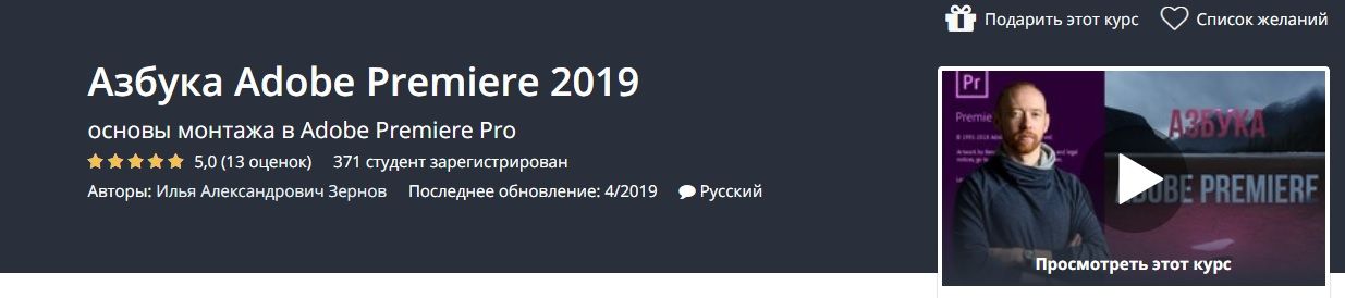 Это базовый курс, поэтому он называется Азбука Premiere, названии не зря фигурирует 2019, потому что в нем собраны все самые последние фичи которые в компании Adobe реализовали в Premiere на 2019. Premiere очень динамично развивающийся продукт и каждый год Adobe выкатывает 2 больших обновлений функционала весной и осенью.