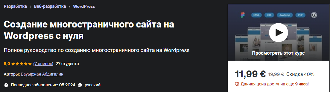 [Бауыржан Абдигалин] [Udemy] Создание многостраничного сайта на Wordpress с нуля (2024)