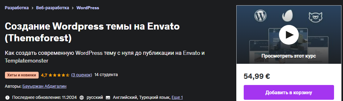 [Udemy] [Бауыржан Абдигалин] Создание Wordpress темы на Envato (Themeforest) (2024)