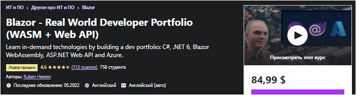 [Udemy] Blazor - Современное Портфолио Разработчика (WASM + веб-API) (2022)
