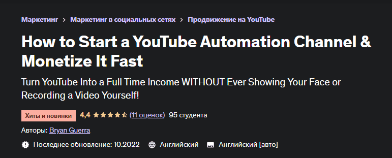 [Udemy] [Bryan Guerra] Как запустить автоматизации канал на YouTube и быстро его монетизировать (2022)