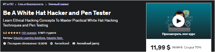Этот исчерпывающий курс охватывает все, что вам нужно знать о взломе в белых шляпах. Получите знания, получите опыт.