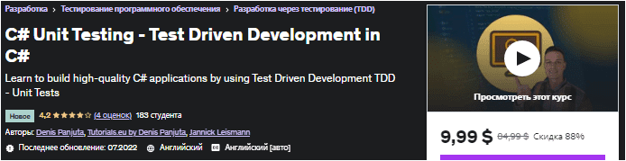 [Udemy] C# TDD с разработкой через тестирование — написание модульных тестов (2022)