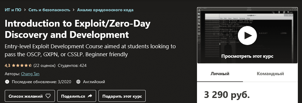 [Udemy] Chang Tan - Введение в разработку эксплойтов начального уровня (2020)