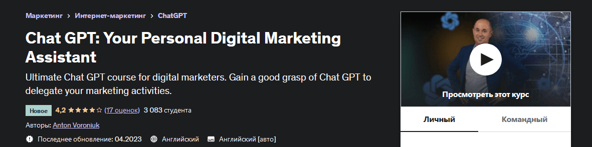 [Udemy] Chat GPT - ваш личный помощник по цифровому маркетингу (2023)