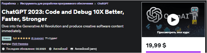 [Udemy] ChatGPT 2023: программирование и отладка в 10 раз лучше, быстрее, надежнее (2023)