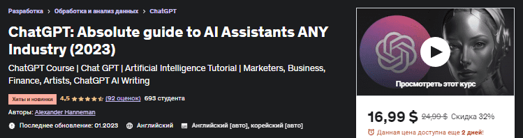 [Udemy] ChatGPT: Абсолютное руководство по искусственному интеллекту в ЛЮБОЙ отрасли (2023)