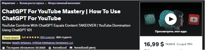 [Udemy] ChatGPT для мастерства YouTube | Как использовать ChatGPT для YouTube (2023)