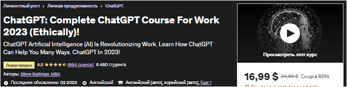 [Udemy] ChatGPT: пройдите курс ChatGPT для работы 2023 (этически)! (2023)