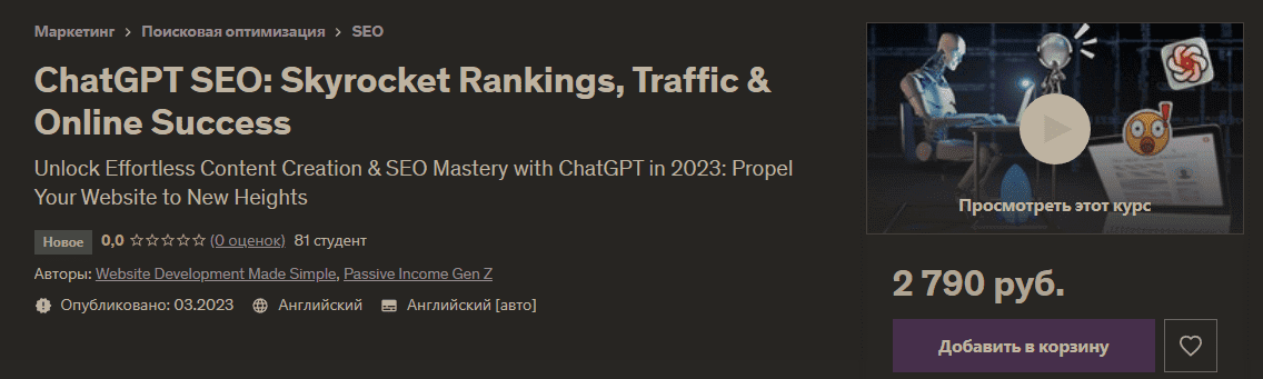 [Udemy] ChatGPT SEO - Повышение рейтинга, трафика и успеха в Интернете (2023)