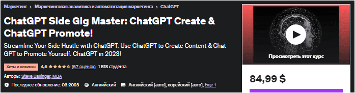 [Udemy] ChatGPT Side Gig Master: создание ChatGPT и продвижение ChatGPT! (2023)