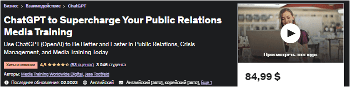 [Udemy] ChatGPT улучшит ваш тренинг по связям с общественностью для СМИ (2023)