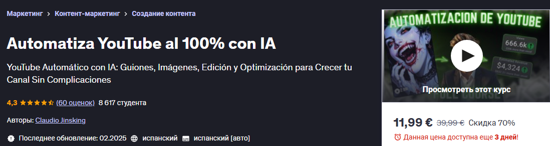 [Claudio Jinsking] [Udemy] Автоматизируйте на 100% YouTube с искусственным интеллектом (2025)