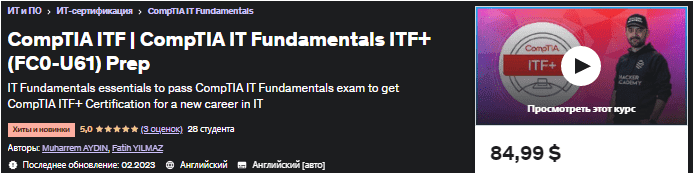 [Udemy] CompTIA ITF | CompTIA IT Fundamentals ITF+ (FC0-U61) Подготовка (2023)