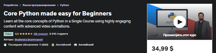 В курсе будут рассмотрены такие необходимые концепции, как основы программирования, типы данных, условные операторы, циклы и функции, а также обработка исключений. Эти концепции являются общими для всех языков программирования, но курс научит вас, как эффективно реализовать эти концепции программирования в программировании на Python.