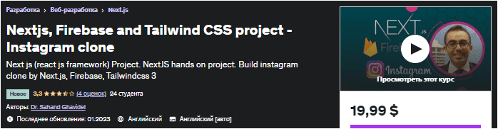 [Udemy] CSS-проект Nextjs, Firebase и Tailwind — клон Instagram (2023)
