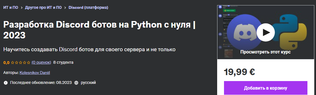 [Udemy] [Daniil Kolesnikov] Разработка Discord ботов на Python с нуля (2023)