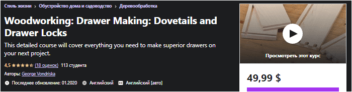 [Udemy] Деревообработка: изготовление ящиков: ласточкины хвосты и замки для ящиков (2020)
