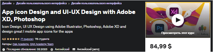 [Udemy] Дизайн значков приложений и дизайн UI-UX с Adobe XD, Photoshop (2023)