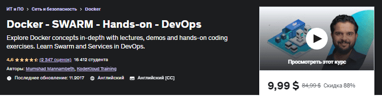 «Это лучший курс на Udemy по всем вопросам, связанным с Docker. Я только что прошел 3 собеседования по DevOps, изучив этот курс от начала до конца. Не могу дождаться выхода курса Kubernetes!!» - Студенческий отзыв