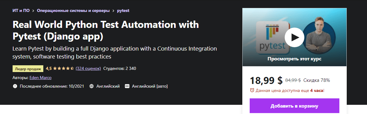 [Udemy] Eden Marco - Автоматизация тестирования Python в реальном мире с помощью Pytest (2021)
