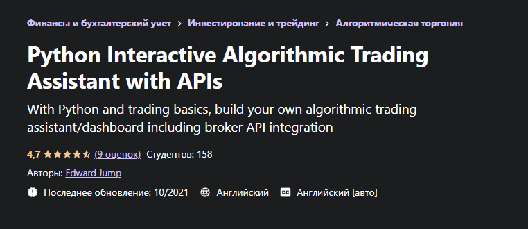 [Udemy] Edward Jump - Интерактивный помощник по алгоритмической торговле на Python с API (2021)