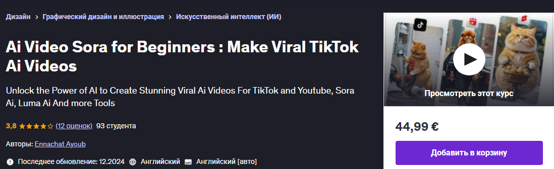 [Эннахат Аюб] [Udemy] Ai Video Sora для начинающих: Создавайте вирусные видеоролики TikTok Ai (2024)