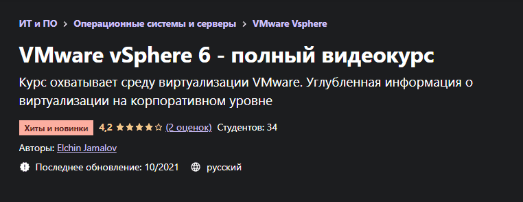 [Udemy] Elchin Jamalov: VMware vSphere 6 - полный видеокурс (2021)