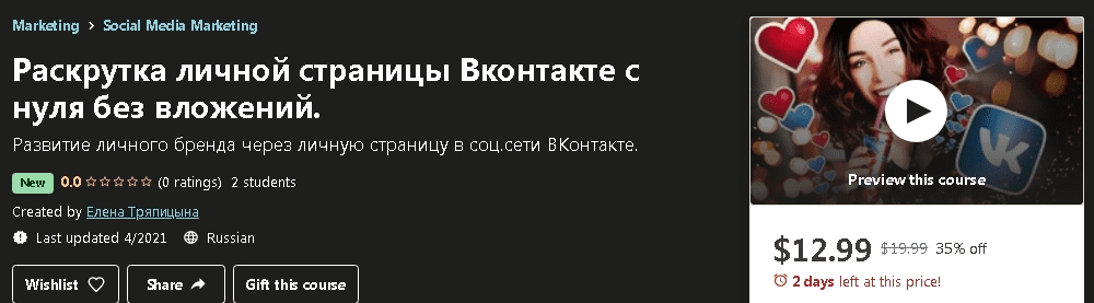 [Udemy] Елена Тряпицына - Раскрутка личной страницы Вконтакте с нуля без вложений (2021)