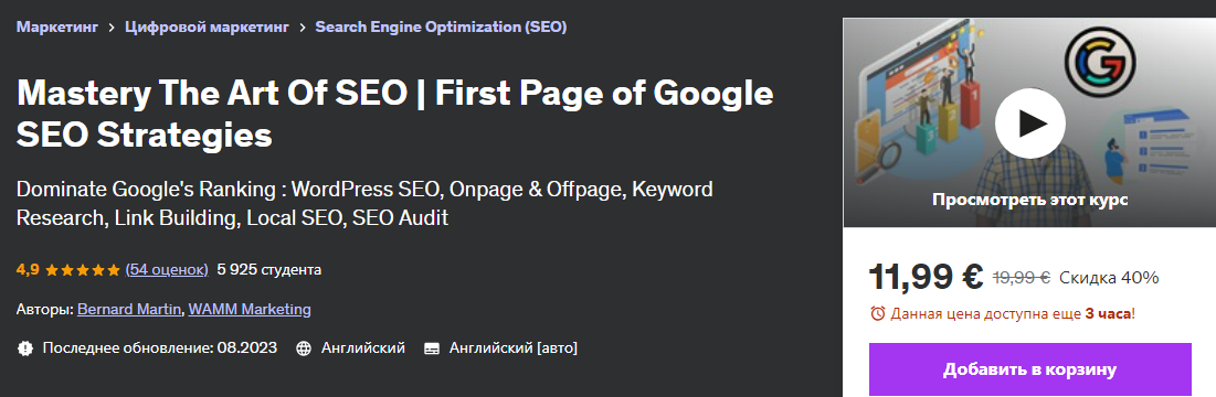 [Udemy] [Bernard Martin] Овладейте искусством SEO. SEO-стратегии для первой страницы Google (2024)