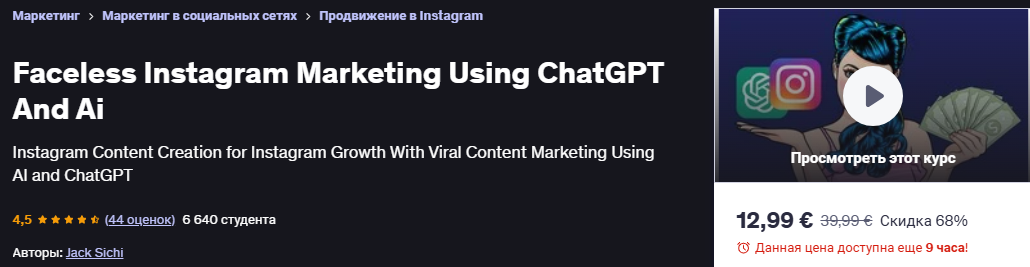 Название: Безликий маркетинг в Instagram с ChatGPT и искусственным интеллектом (2025)