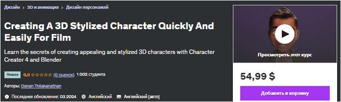 [Udemy] [ENG] Быстрое и простое создание стилизованного 3D-персонажа для фильма (2024)