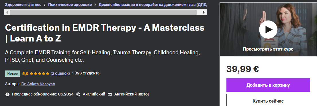 [Udemy] [ENG] [Dr. Ankita Kashyap] Сертификация по терапии EMDR. Изучите от А до Я (2024)