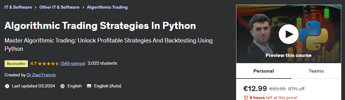 [Udemy] [ENG] [Dr Ziad Francis] Алгоритмические торговые стратегии на Python. Algorithmic Trading Strategies In Python (2024)