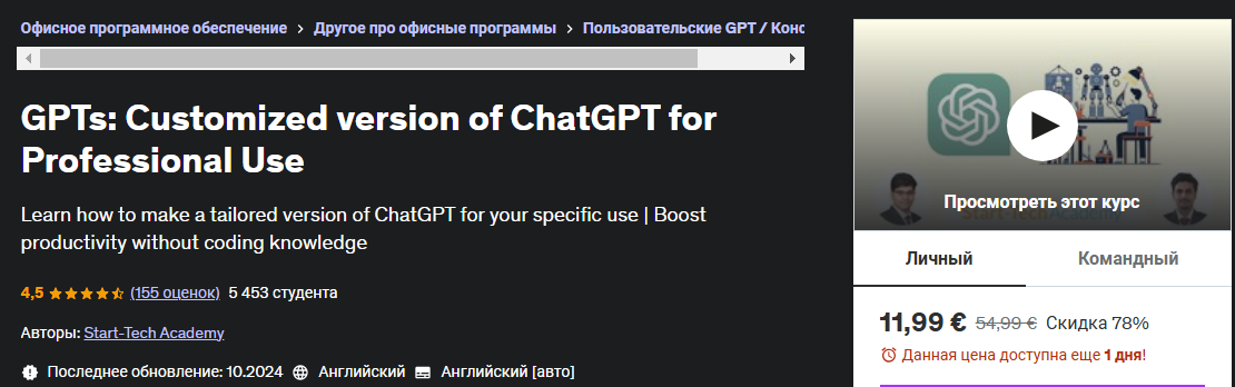 Название: GPTs - Персонализированная версия ChatGPT для профессионального использования (2024)