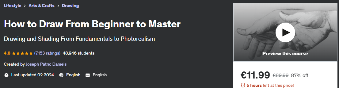 Я разработал этот курс так, чтобы он подошел всем, даже тем, кто утверждает, что едва может нарисовать палочку! Я верю, что каждый может научиться рисовать — это навык, который можно освоить, а не что-то, с чем вы рождаетесь. Нужно учиться, как игре на музыкальном инструменте или чтению. Я создал этот курс как для начинающих, так и для опытных художников, которые хотят овладеть традиционными техниками рисования. Курс поможет вам быстро прогрессировать и наслаждаться процессом рисования!