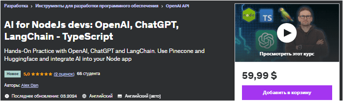 [Udemy] [ENG] ИИ для разработчиков NodeJs: OpenAI, ChatGPT, LangChain – TypeScript (2024)