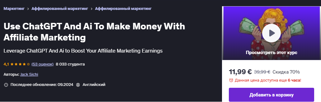 Название: Используйте ChatGPT и ИИ, чтобы зарабатывать деньги с помощью партнерского маркетинга (2024)