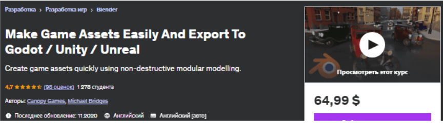 [Udemy] [Eng] Легко создавайте игровые ресурсы и экспортируйте их в Godot / Unity / Unreal (2020)