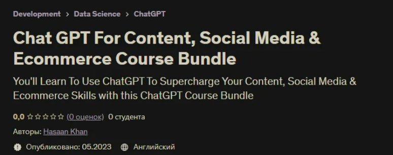 - Используйте ChatGPT для электронной коммерции и продаж: Мы покажем вам, как использовать ChatGPT и OpenAI для написания убедительных описаний товаров, целевых страниц и других типов продающих текстов. Вы сможете использовать ChatGPT для определения целевых рынков и прибыльных ниш, ключевых моментов продаж и создания убедительных призывов к действию, которые приведут к покупкам!