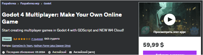 [Udemy] [Eng] Многопользовательская игра Godot 4: создайте свою собственную онлайн-игру (2024)