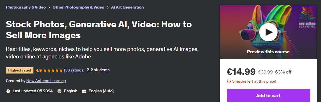 [Udemy] [New Anthem Learning] Стоковые фото, генеративный ИИ, видео: как продавать больше картинок (2024)