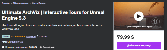 [Udemy] [ENG] Окончательный ArchViz | Интерактивные туры по Unreal Engine 5.3 (2024)