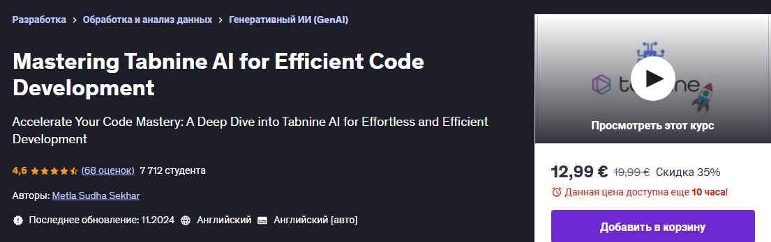 Название: Освоение Tabnine AI для эффективной разработки кода (2024)